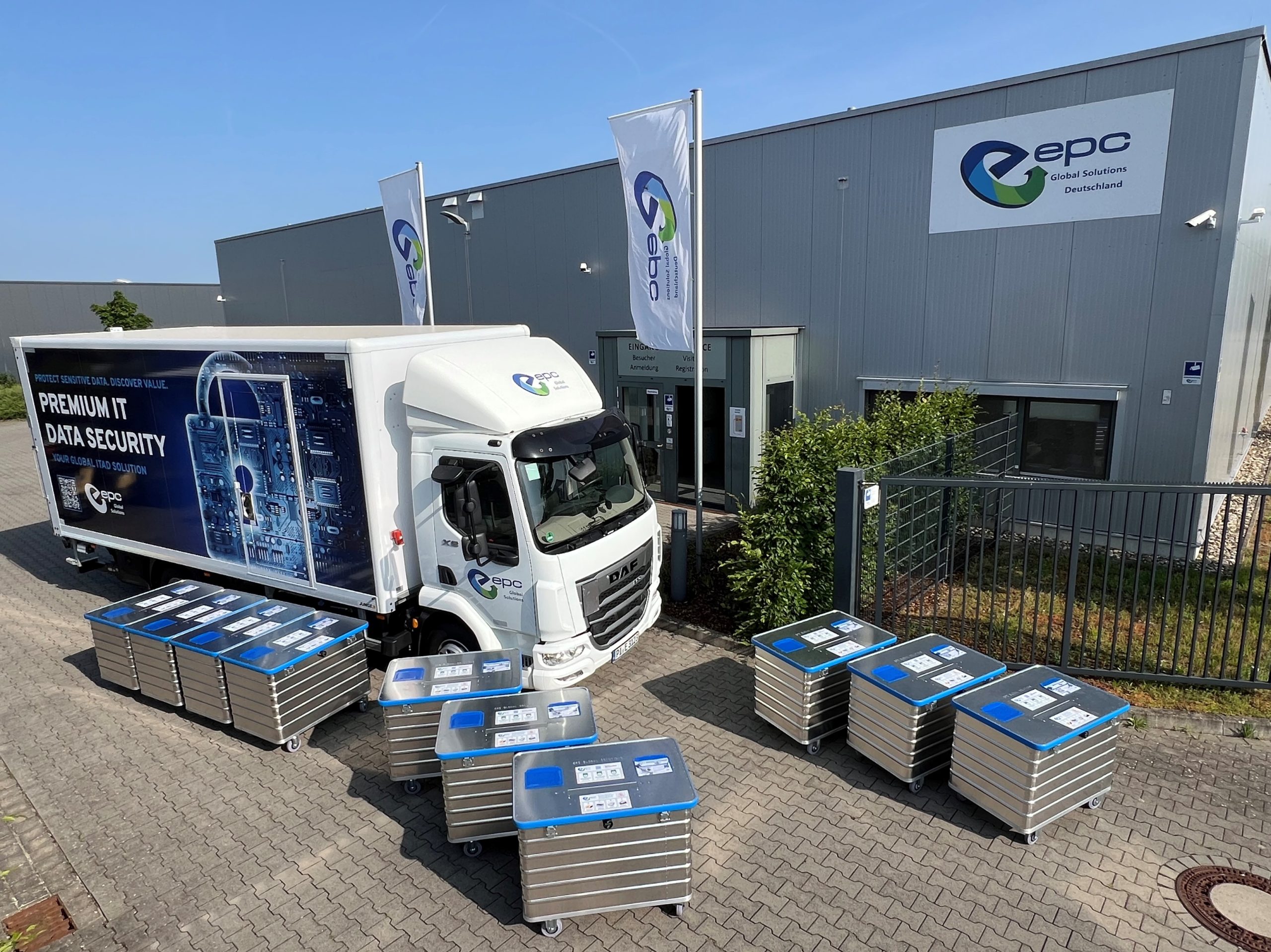 Nach dem Verpacken durch Sie oder unsere Mitarbeiter transportiere wir oder ihr Spediteur ihre Datenträger zur weiteren Aufbereitung, zum Remarketing oder zur Verwertung in unsere nächste Niederlassung. Bei Verpackung und Transport durch EPC geht das Verlust- oder Beschädigungsrisiko auf EPC über.